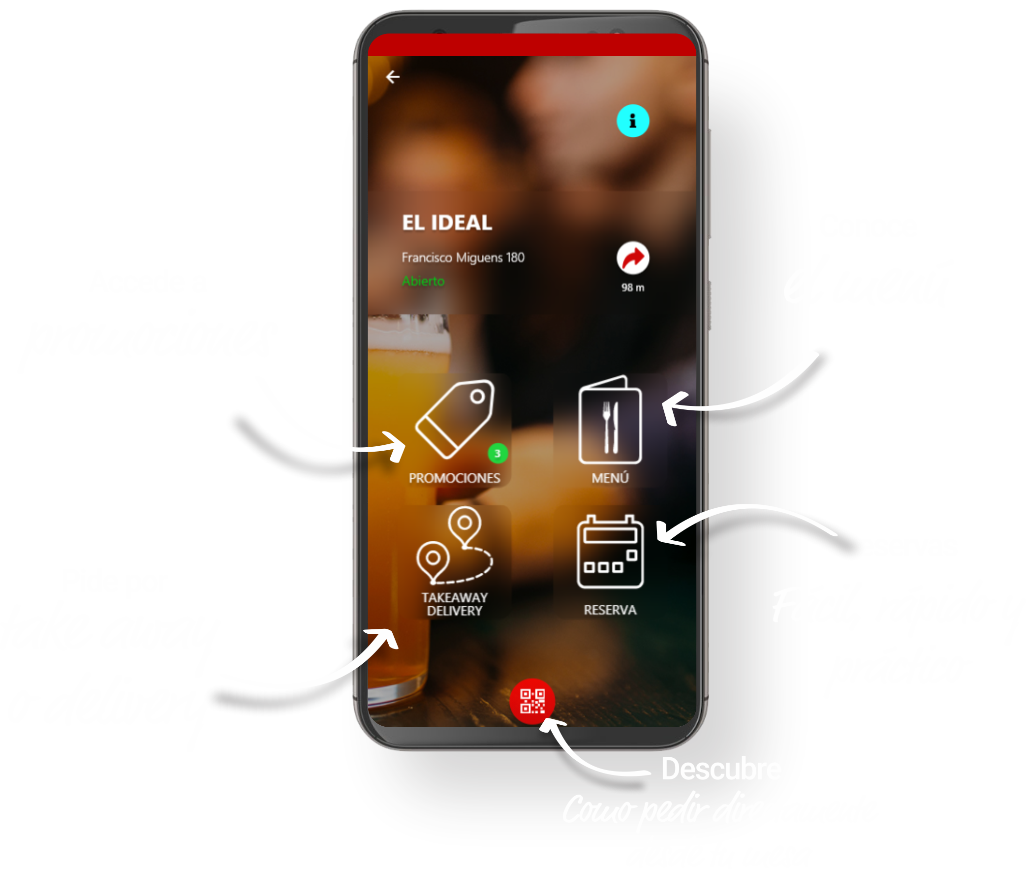 Bares, restaurantes y heladerías por proximidad o preferencia.